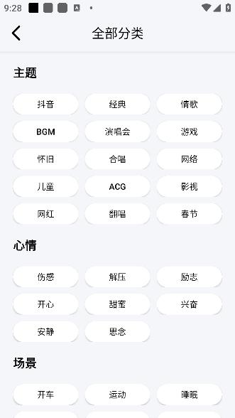 3、选择喜欢的分类后可以获得大波同类型的音乐