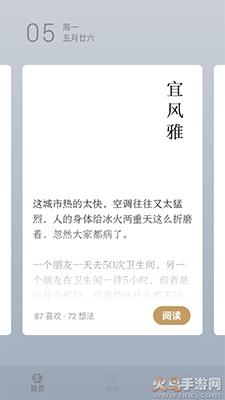 岛读(原日课)app写想法这是一款极简主义的每日阅读应用,在这里,你不止能发现值得一看的好文章,还能遇见和你一样认真有趣的人。从散文到诗歌、从小说到随笔,每天用上几分钟,与更有趣的灵魂对话,为你的心灵注入光芒,以文字致敬文字,用想法遇见更有趣的灵魂