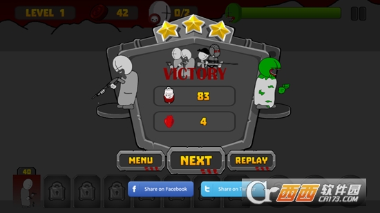 - 你必须用手指轻扫一个单位,一个疯狂的人将会产生并防御僵尸