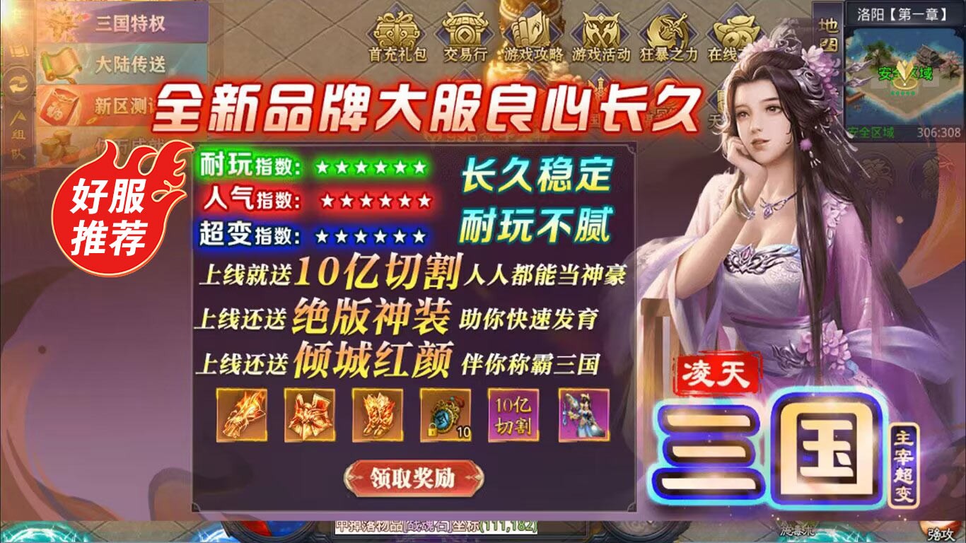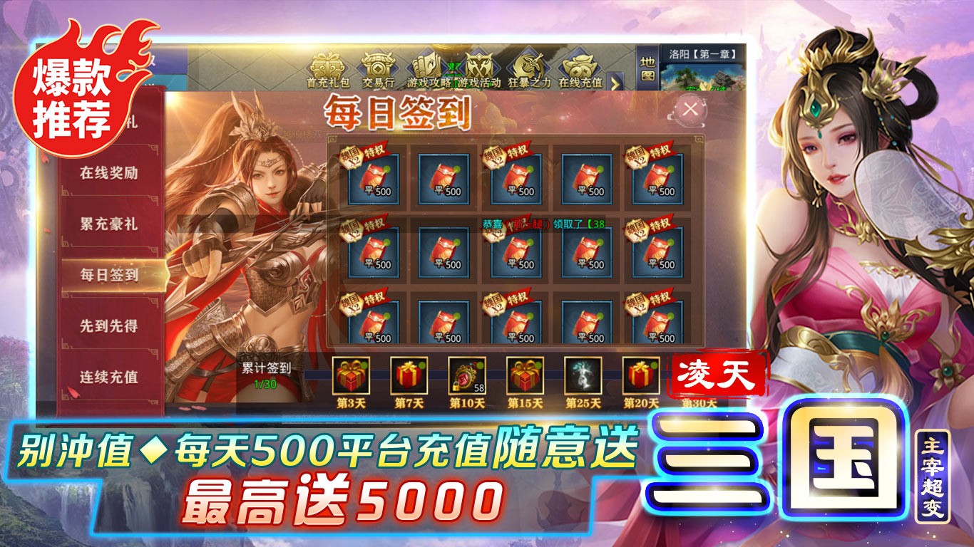 凌天三国主宰超变为玩家带来热血爽快的超变玩法,精彩庞大的地图场景,玩家能够自由地展开探索,所有的装备全靠打,各种强力的神装轻松获得,与玩家加入到组队的战斗之中,与各路高手组队战斗,挑战强大的世界boss,瓜分稀有的资源奖励。