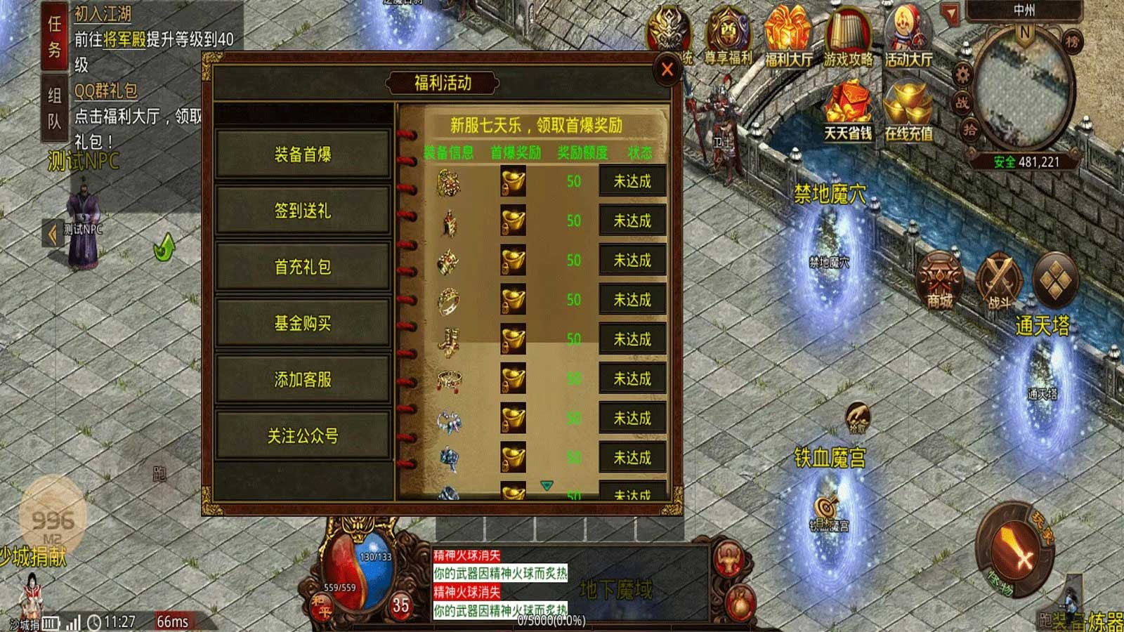 3.爆率高所有装备都能直接爆出。装备首爆元宝奖励人人无限制领取。