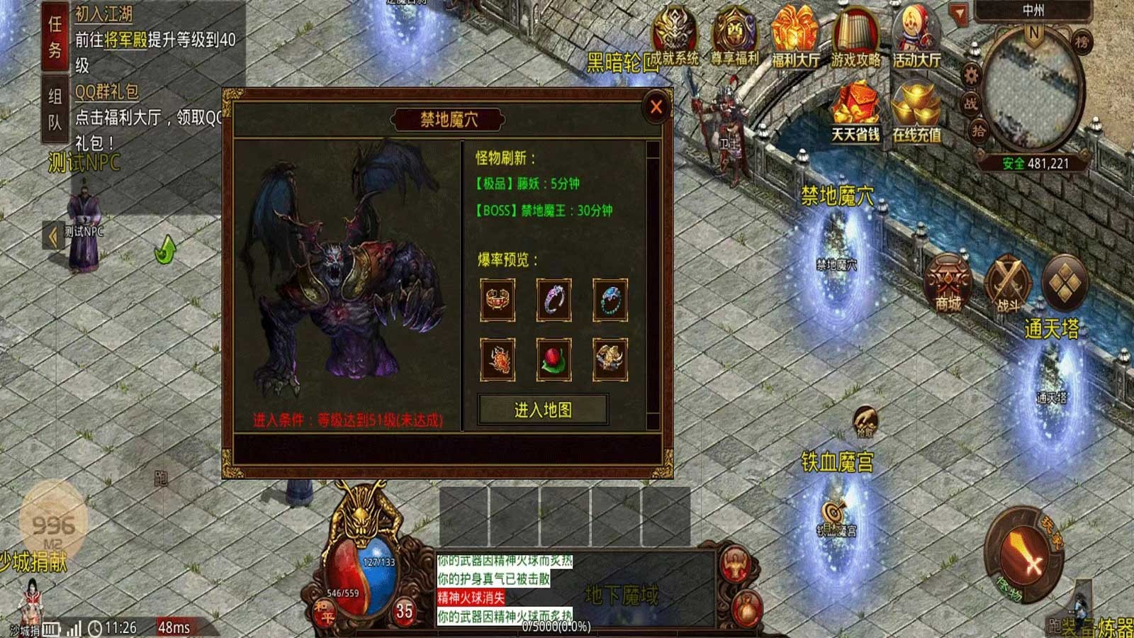 2.装备物品爆率每个地图NPC图片清晰展示,怪物高额产出经验丹助力快速升级。