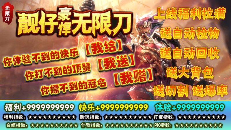 这款游戏有着经典热血的无限刀玩法,掉落的物品无绑定自由交易,强力的神装永久保值,自由地交易买卖,一键出售闲置神装,获得大量的元宝奖励,助你快速到达战斗力的巅峰,完成你的霸业征途。