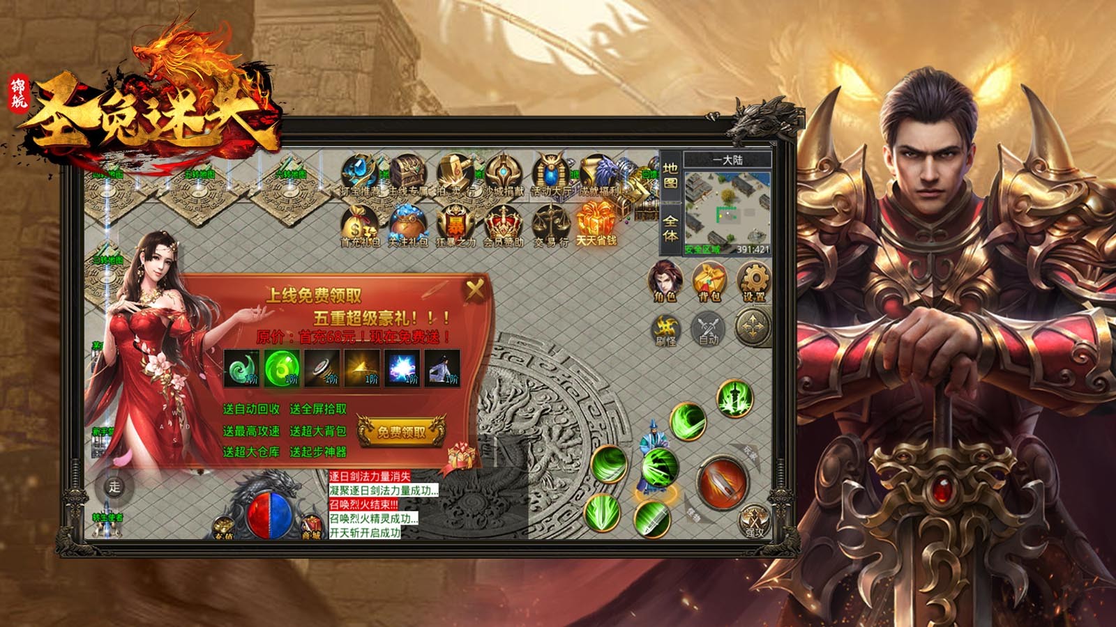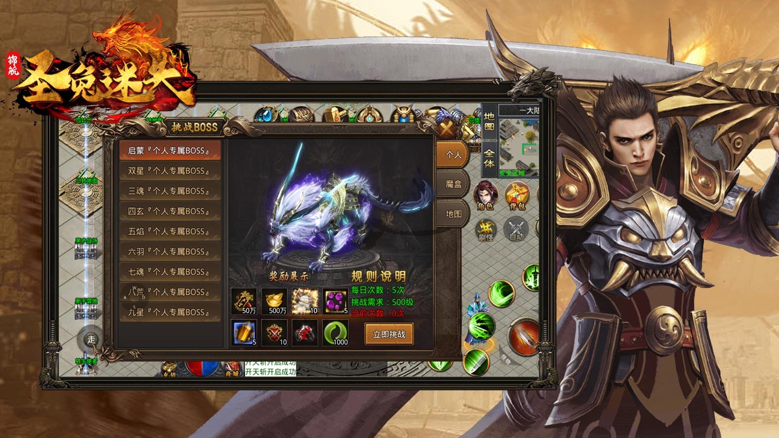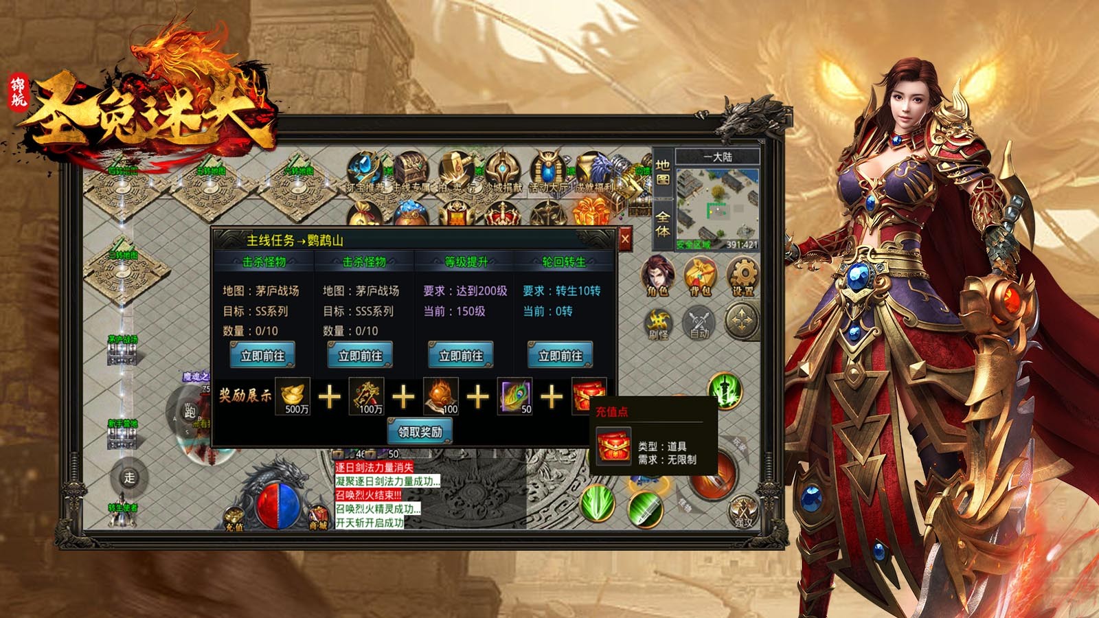 4.大陆地图:本服分为转生地图、称号地图、各大BOSS应有尽有。