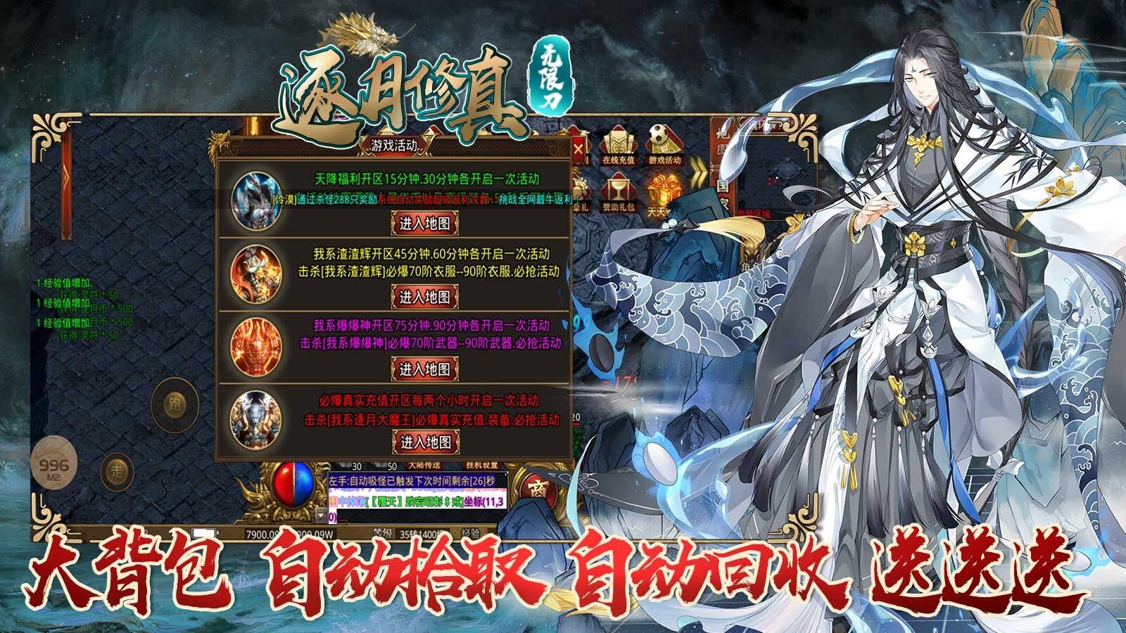 逐月修真无限刀为玩家带来精彩爽快的无限刀传奇玩法,庞大的传奇世界,玩家能够自由地展开探索,全新的大陆和副本等待着你的加入,随时都能够参与到刷怪打金的战斗之中,野怪也能够获得强力的神装,只要花时间即可助你到达顶峰,称霸整个传奇世界。