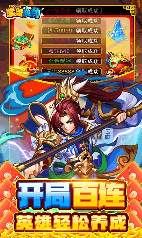 1.上线赠送VIP20、20000元充值卡、30000元宝、3000000金币、所有紫色神将!