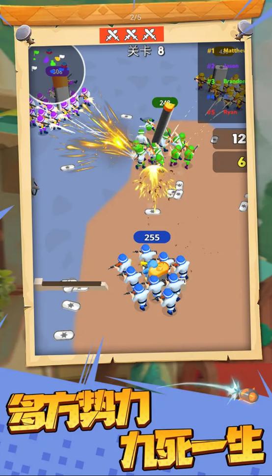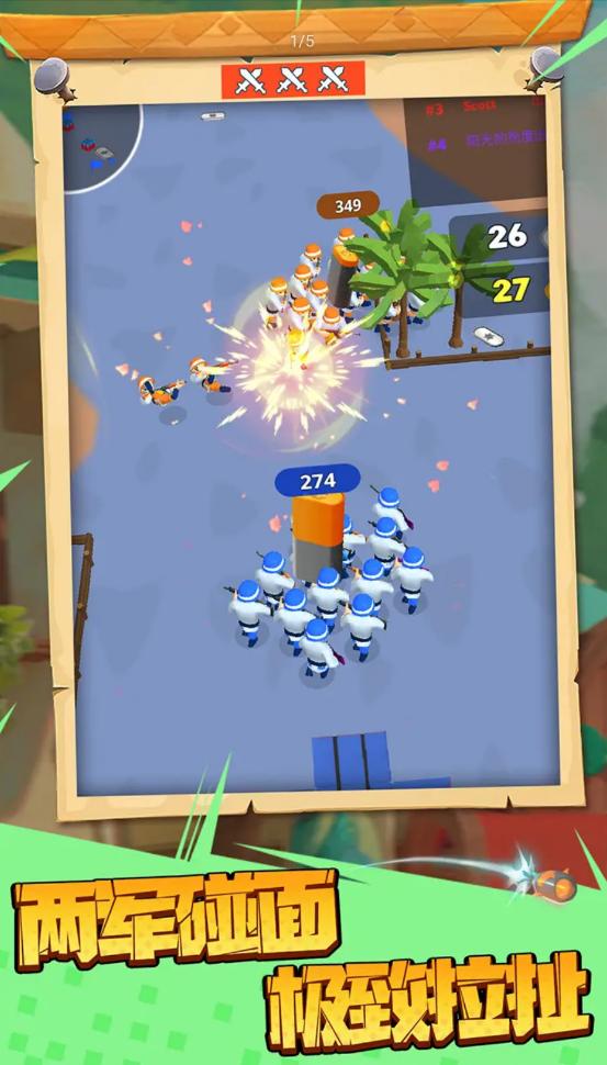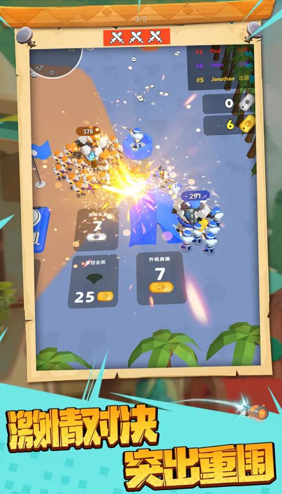 王国战争模拟器是卡通绘画风格休闲战争战略小游戏。作为王国的指挥官,玩家聚集海、陆、空武器组成你的军队,收集强大的武装部队加入战斗,摧毁敌人,征服这片领土,以及一个超级有趣的战争战略游戏。玩家扮演岛上的总指挥,需要建立一个当地的兵营,并迅速招募士兵。通过四次旅行来捡金银宝藏,升级武器和兵营防御,从而击退敌人的士兵,攻击敌人的兵营,像战争战略游戏玩家不会错过,现在下载体验!