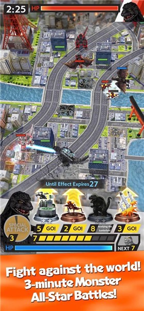 在游戏中,玩家将成为哥斯拉与世界上的怪物战斗,使用强大的技能打败敌人,不断提高战斗效能,最终成为世界的主人。准备好一场有趣但紧张的3分钟战斗吧,计划你的战略,把你的怪物送进战斗,每个怪物都在思考和行动。