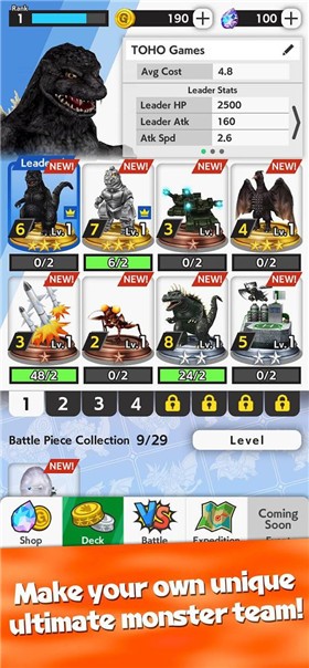哥斯拉战线正版是一款哥斯拉题材改编的怪兽策略战斗冒险游戏,你的怪物如何与每个地形的独特功能互动将决定赢家,争取在每月的排名比赛中获得第一名,根据你的排名获得特殊奖励,玩家可以在世界各地城市的地图关卡中部署自己的怪物,怪物根据自己的AI思维行动,一旦靠近对方就会战斗,如果双方能够先打败敌人的怪物首领,他们便能够获胜。