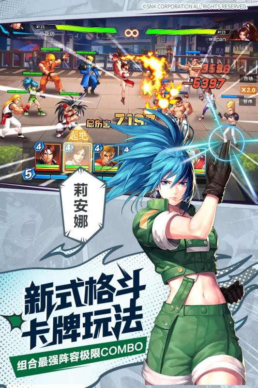 拳皇中所有的人物不需要充值就可以在手机上随意畅玩,这对于以前的街机粉丝可以说是很大的福利了,目前测试版已经开服,如果你能在游戏中找到一些bug及时提交还有很多特殊的奖励给到玩家哦~我们的拳头就在这一刻连接在一起!培养你操控的人物用你的头脑轻松解决每一个副本吧~还可以进行觉醒领悟更炫酷的技能~