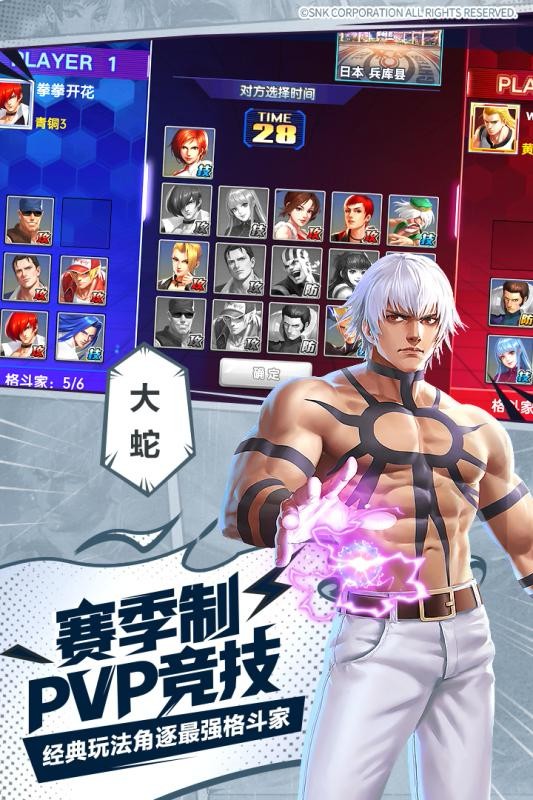 拳魂觉醒手游是由经典SNK正版授权的策略卡牌类手机游戏!拳皇中超多经典人物都在这里原型还原,无论是人物模型比例还是穿着的服装,都是那个带给玩家印象最深刻的97版本~还有大蛇出没加入就可以随意选择角色开启你在这里的冒险~后续的角色的阵容都需要玩家的自己抽取与配置,技能的特效可以说也是非常不错的~操作简单好上手,喜欢就来玩~