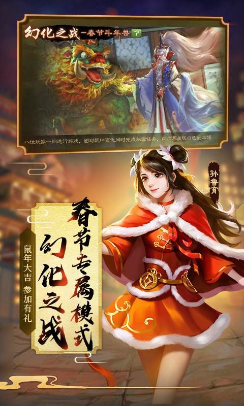 在本次春节活动中,玩家尽可以在全新的三国杀知识竞赛中以自己独到的见解以及知识能力击败各种对手,收获奖励丰厚的现金红包。幻化之战的春节版的上线更是充实了游戏玩法,是利用年兽运筹帷幄还是以不同的牌组进行击败由你决定,更有全新武将等你入手!