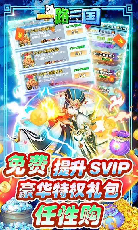 一路三国无限资源版是一款相当刺激精彩的卡牌对战游戏,刺激的三国元素,全新的有版本和玩法,游戏内的资源奖励非常多,游戏融入了非常多的元素,众多的角色武将等待玩家去收集,非常多的历史剧情故事,非常经典的战役对战元素。游戏画面的是丰富精美的,非常美好的游戏感受,色彩的搭配非常的鲜明,喜欢的玩家们快去尝试游戏吧。