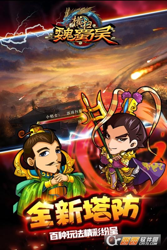 横扫魏蜀吴是2018最火热的三国塔防策略游戏,以三国乱世为故事背景,全新塔防搭配上上百种玩法,收集武将,提升等级和技能,搭配上合理的阵容开启你的塔防防守之旅,还有丰富的兵种和战术选择,喜欢三国塔防游戏的赶快下载吧。