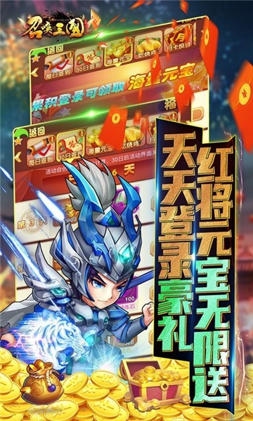 7、每天登录送海量奖励、红将、元宝全都送(点击福利-每日签到、30日签到、海量元宝三个活动)