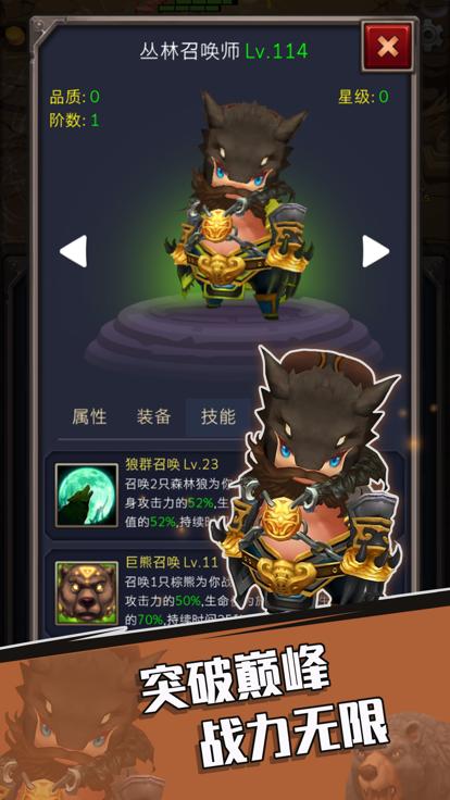 2.放置的战斗玩法,在离线的过程中也能够自动战斗,轻松解放自己的双手,助你快速提升等级。