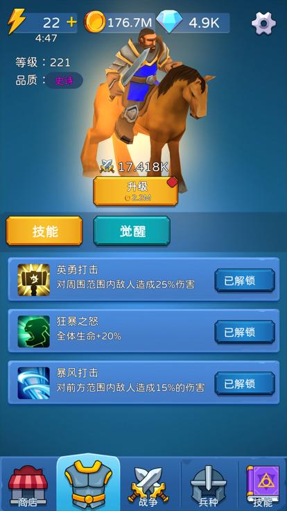 2.多种不同的养成玩法,玩家能够自由地设计及觉醒,提升被动能力,快速升级你的英雄。