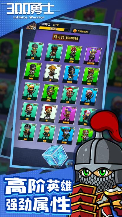 300勇士为玩家带来精彩有趣的冒险玩法,在游戏中具有数千种强力的勇士角色,加入到精彩的战斗之中,更多独特的场景等待着你的探索,感受指尖的点击微操,踏上无限的征程挑战,获取珍稀的宝藏,收获无限的惊喜和欢乐。