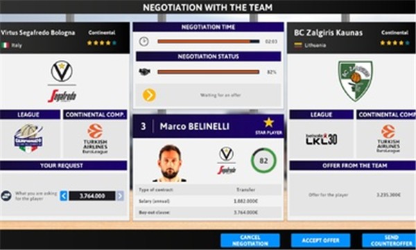 这款游戏中有很多的模式和竞技比赛在等待玩家,成为一代篮球经理大师,有很多的挑战模式和挑战的玩法在等待玩家游玩,完成其中的各种各样的冒险,带来的玩法很是丰富。
