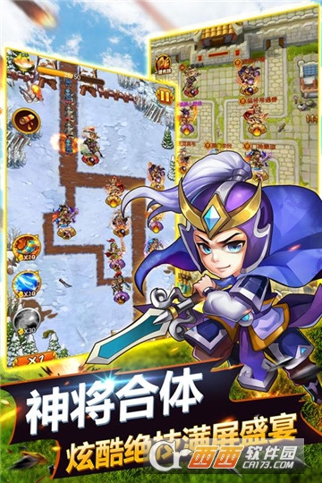 2、配备了精致三国神将形象,丰富真实的多元化地图,霸气威凛的防御塔!