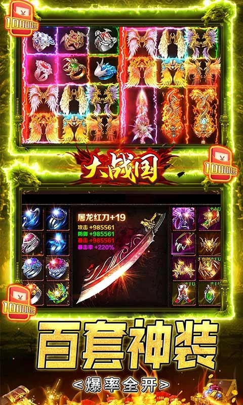 大战国高爆打金版来袭,刺激传奇竞技游戏,刺激打金竞技传奇,各色散人福利轻松白嫖,自由刺激的设计,多处细节拉满,大量资源礼包全都免费获取,多样传奇元宝轻松爆,传奇火力全开,收益非常高的经典传奇竞技游戏,无限激情竞技,所有的传奇装备都靠玩家打怪爆出,无限神器时装,非常值得去尝试的传奇竞技冒险游戏。