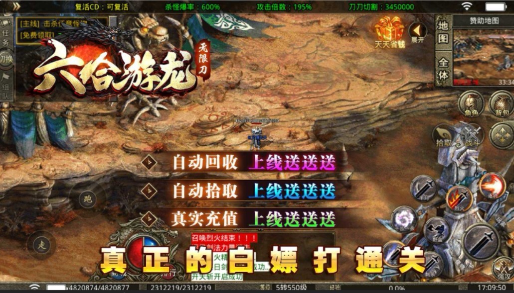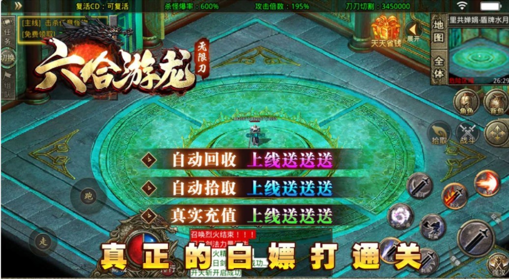 六合游龙无限刀来袭,刺激传奇竞技游戏,无限刀传奇,传奇礼包奖励:续命药丸*100,七星海棠*10,真实合击传奇竞技游戏吗,各种传奇福利轻松获取,无限刺激的传奇沙攻竞技玩法,多去尝试最新操作,轻松尝试多个系列刺激竞技玩法,激情传奇战斗不停歇,轻松白嫖无限资源,非常值得去尝试的传奇竞技冒险游戏。