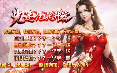 光速亿兆神器传奇游戏来袭,传奇礼包奖励:绑定白银元宝*10000,天地结晶*1000。神器资源传奇竞技游戏,斗笠盾牌是战斗必备的资源武器,快速提升阶级,每个传奇大陆都有自己专属传奇的神器,快速完成传奇冒险之旅,特色武器会有伤害的加成,非常值得去尝试的传奇竞技冒险游戏。