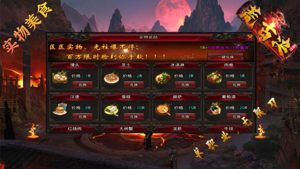 圣力荒古决传奇来袭,无限刀传奇竞技游戏,传奇礼包奖励:斗笠精元*88,盾牌精元*88,神秘实物礼包*1。非常精美的传奇时装装备,真实传奇竞技游戏,超高的传奇爆率,各色等级经验资源丹药,快速提升等级和专属,传奇土城开启激情冒险,传奇前期打装备非常快速,后期更加快速,非常值得去尝试的传奇竞技冒险游戏。