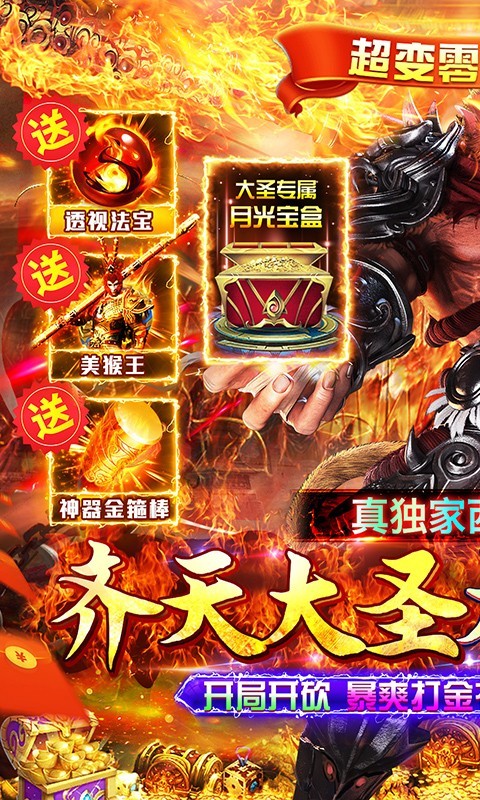 1.独家传奇竞技,超变传奇。爆率非常高,核心大圣悟空角色。