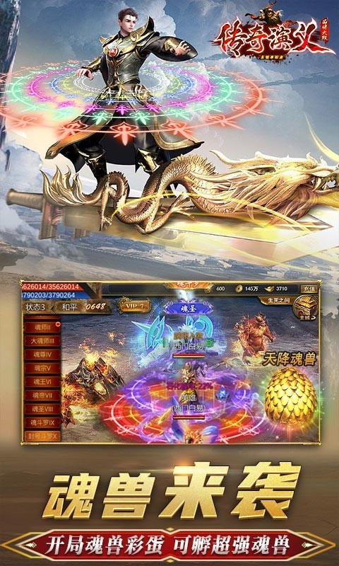 3.在线即可领取超稀有魂兽蛋,可孵化究极魂兽,还有战神套装,赤兔马免费送!