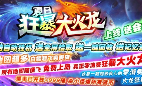 夏日狂爆大火龙是一款角色扮演游戏,激情四射的传奇竞技游戏,火龙传奇竞技版本,真实的零消费传奇,非常爽快的传奇过程,白嫖非常多的奖励,全屏拾取各色资源,爆率不断得到提升,一键轻松回收拾取,三职业传奇,三端互通,趣味的多样副本轻松尝试。非常值得去尝试的传奇竞技游戏。