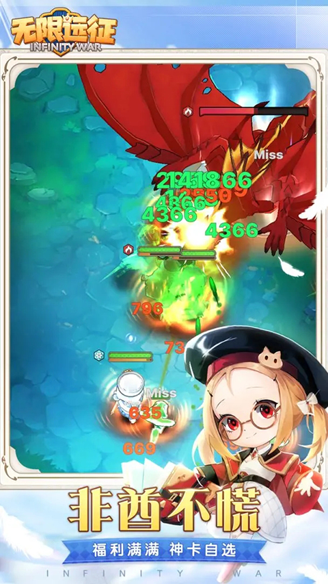 《无限远征》是一款集卡牌策略、放置玩法和社交互动于一体的游戏。玩家可以与其他玩家进行实时对战,展示自己的卡组实力,也可以加入公会,与公会成员一起参与大型活动,共同争夺荣耀和奖励。它不仅考验玩家的策略思维和决策能力,还能让玩家在轻松愉快的游戏氛围中结交新朋友,共同探索这个无限的远征世界。