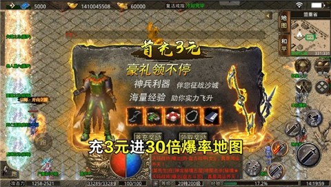 玩家可以轻松地获得武器装备,每天上线都有着丰富的奖励和任务,在游戏中开启传奇的冒险,打不尽的敌人,爆不停的元宝。完成更多的副本任务享受热血刺激的对决挑战,丰富的场景给你体验全新的传奇体验,休闲的玩法也能畅享激情对决。