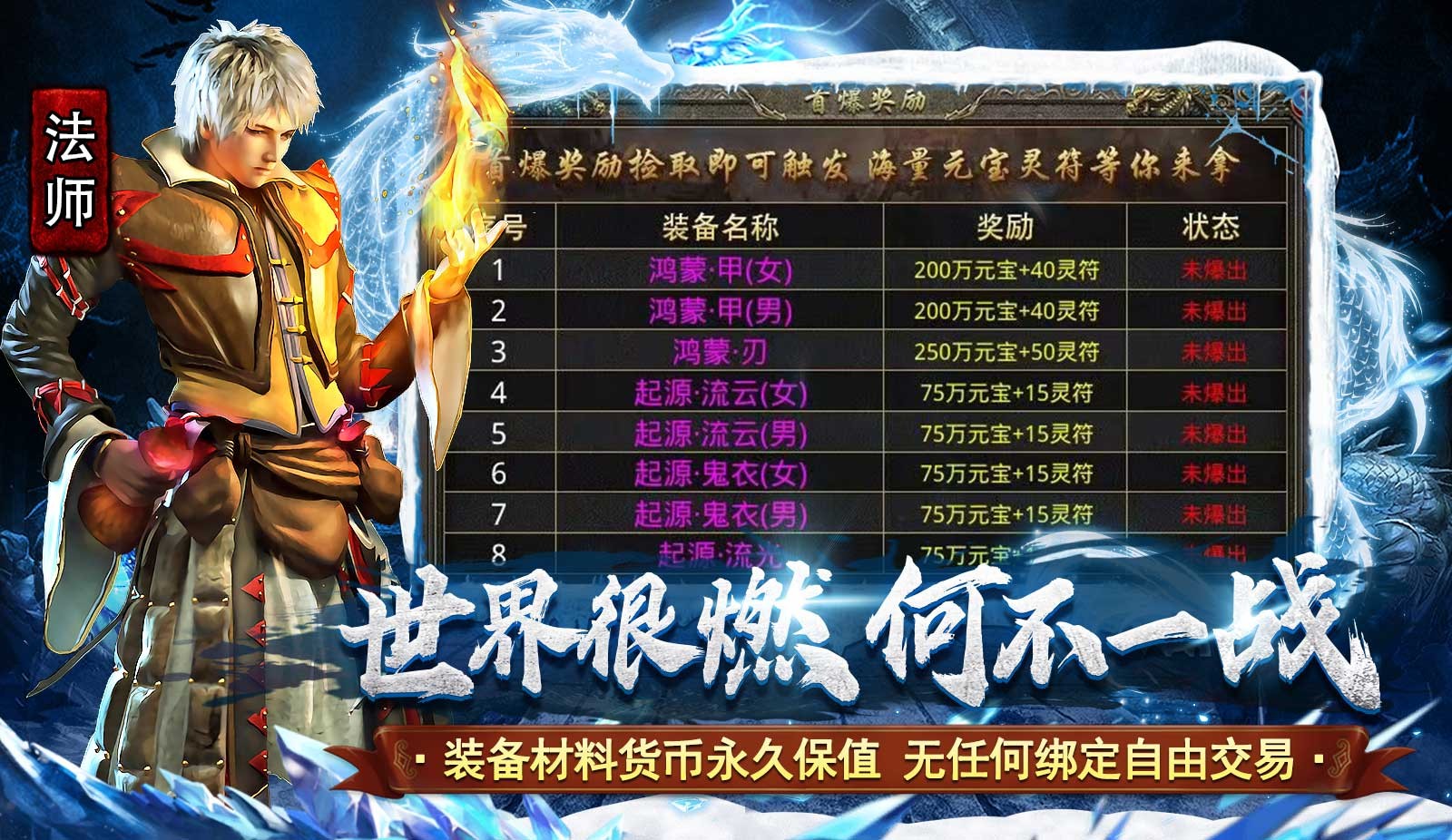 4.元宝保值,装备好打,支持白嫖,长久冰雪搬砖服。