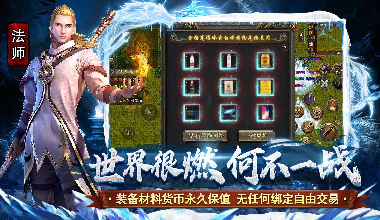 3.所有货币装备均无绑定,自由交易品牌大服千人在线让你极致畅玩冰雪。