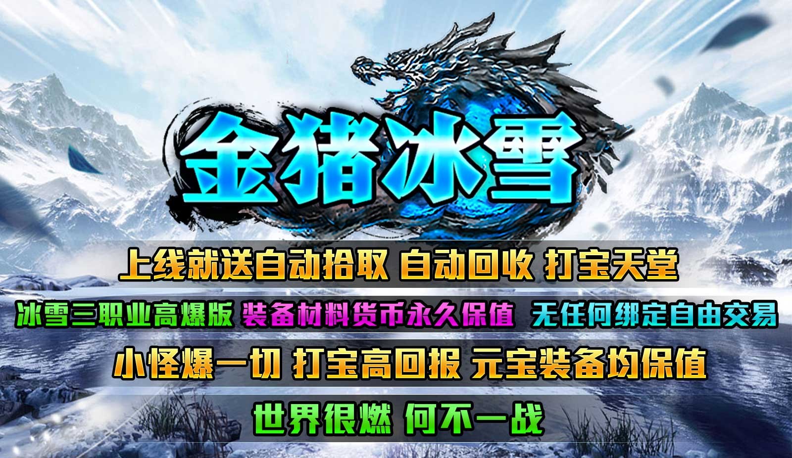 金猪冰雪为玩家带来冰雪版本的传奇游戏,上线即可获得自动拾取会所,所有的装备货币全靠打,强力的神装永久保值,小怪即可爆出一切,只要花费时间即可到达终极,组队挑战强力的世界boss,享受刀刀暴击的震撼感受,书写你的传奇冒险之旅。