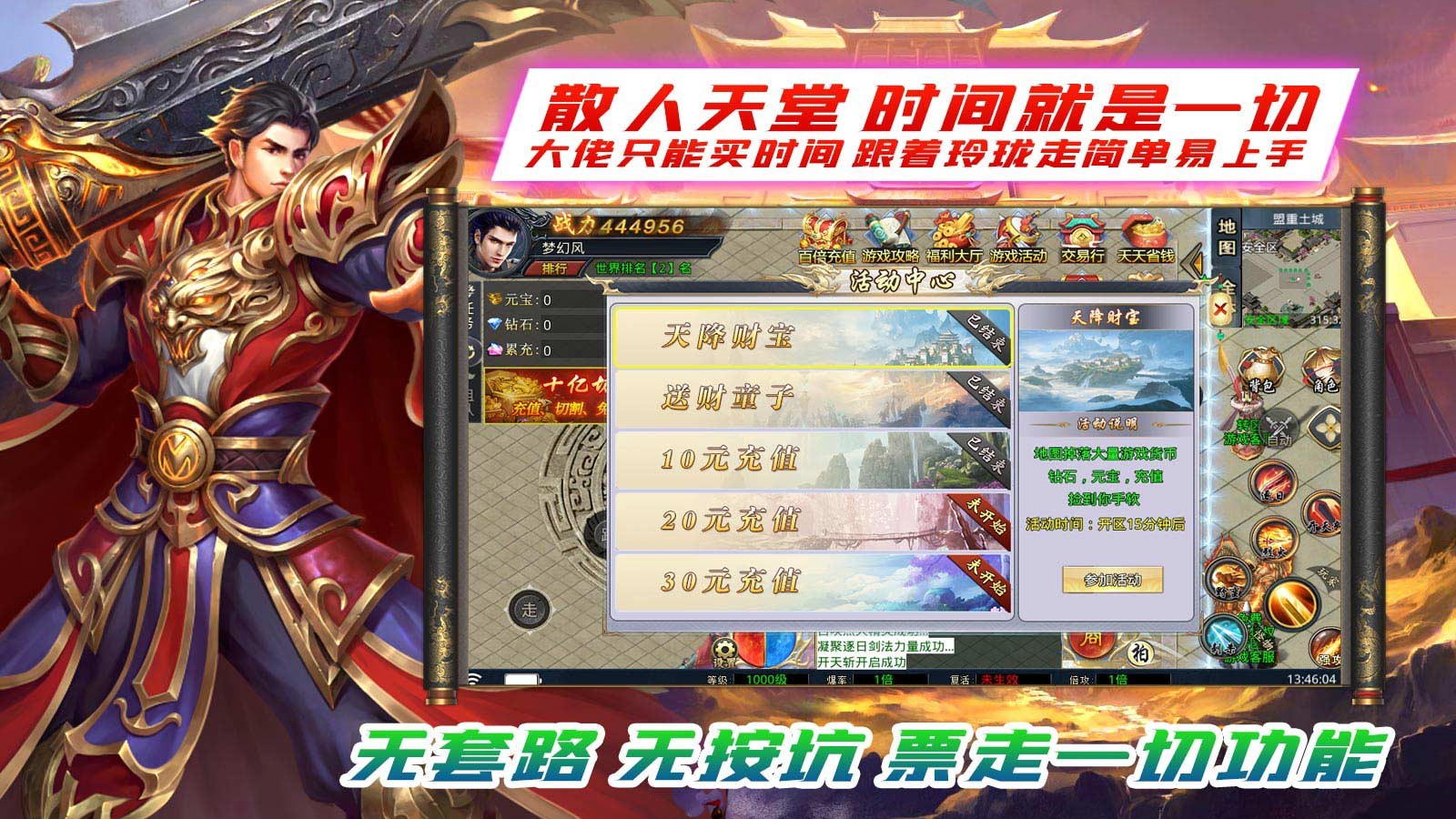 3.自由的交易玩法,掉落的物品无绑定自由交易,强力的神装永久保值,一键出售闲置装备,获得大量的元宝。