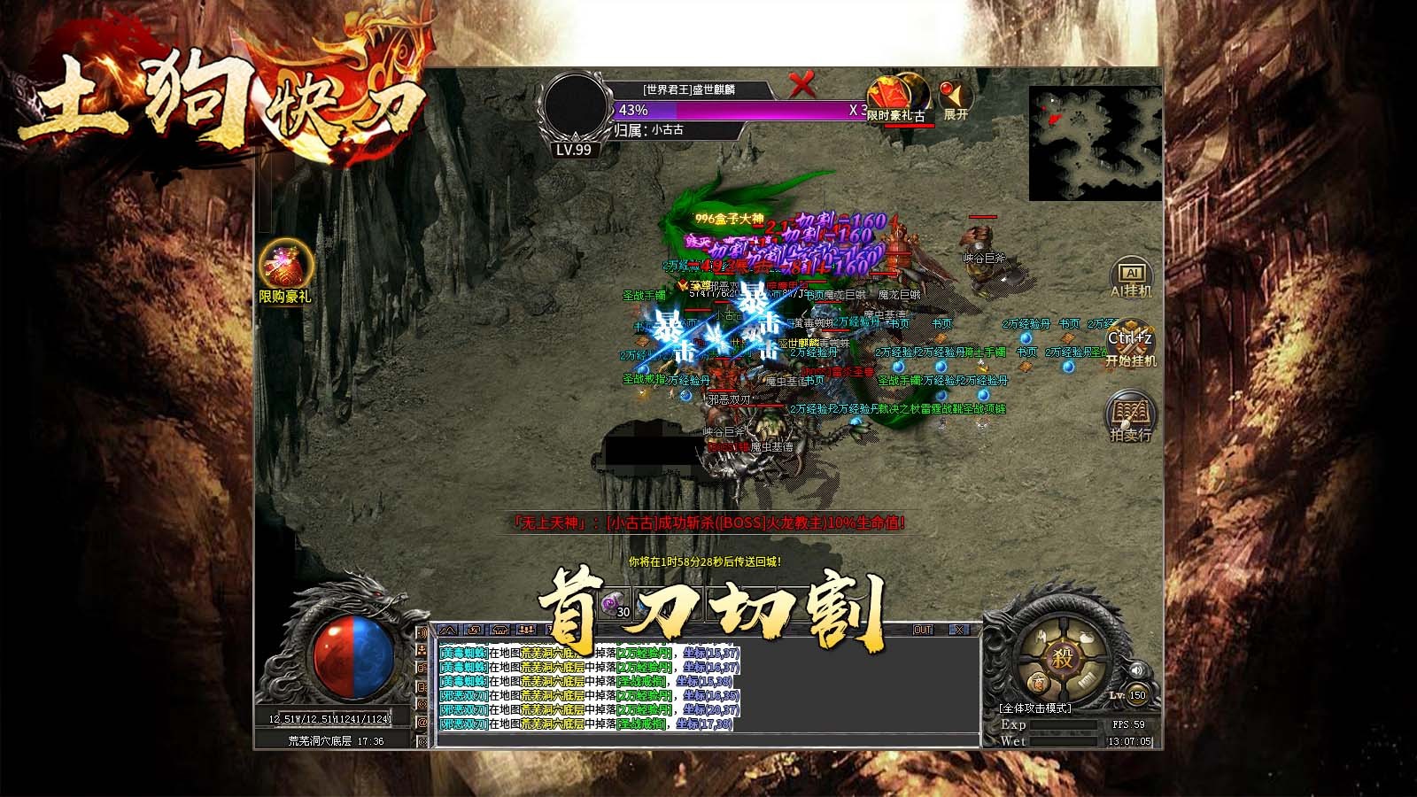 土狗快刀有着精彩的单职业传奇玩法,上线即送自动拾取,一键回收,还原经典的三职业玩法,随时都能够自由转职,所有装备都可打到,无顶赞,无暗坑,野怪也能掉落神装,散人花时间即可到达终极,助你到达战斗力的巅峰,享受不一样的传奇对决。