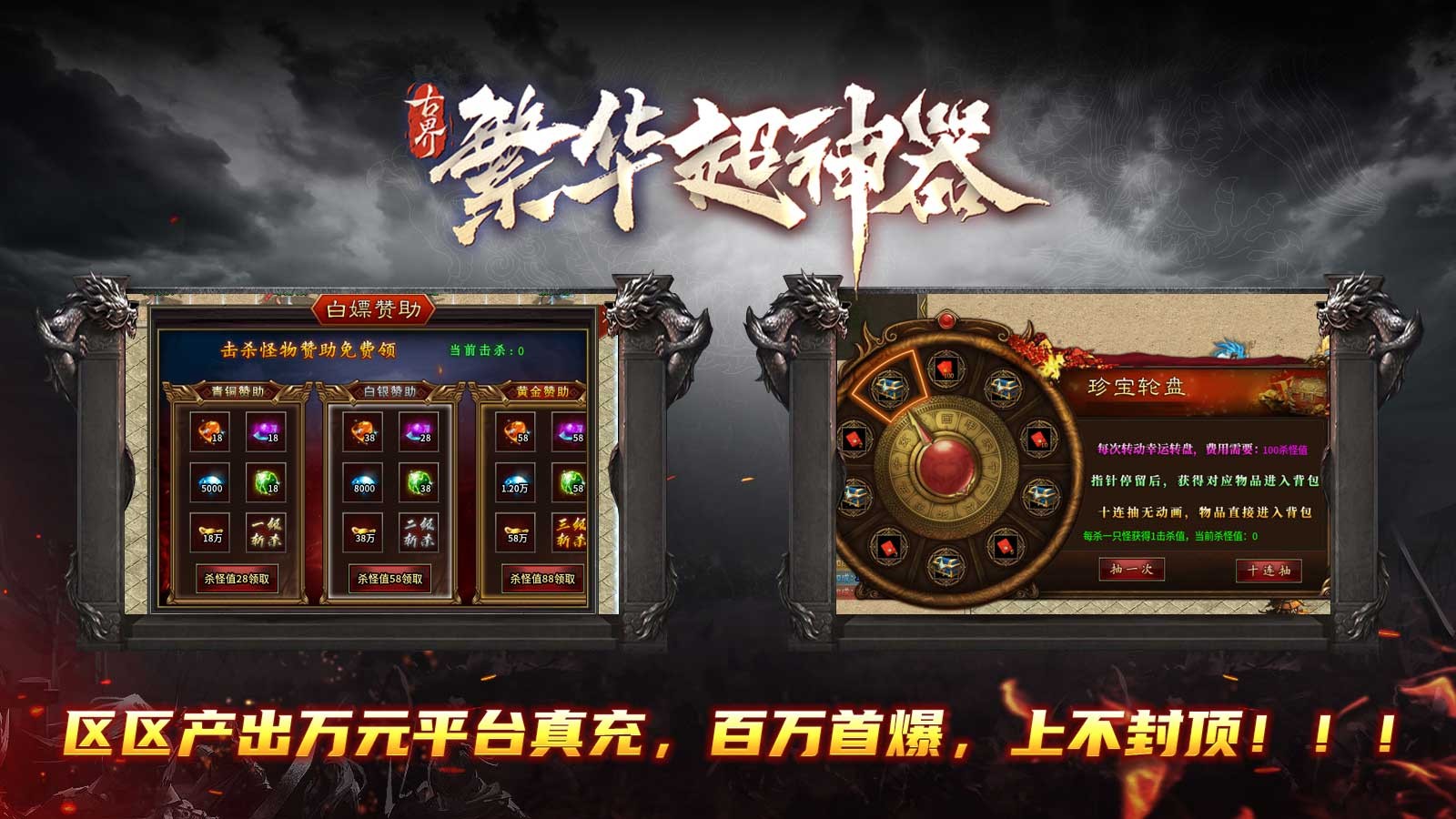 3、切割零氪、装备个人首爆、所有怪爆大量真充红包,真正做到不花一分钱!!