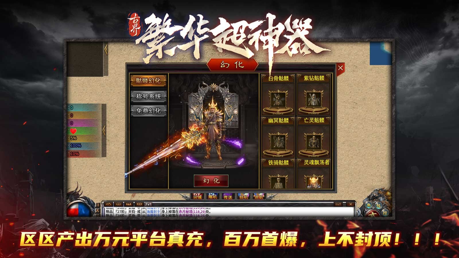 1、炫酷骷髅、外观幻化、称号幻化,一切皆可打!!