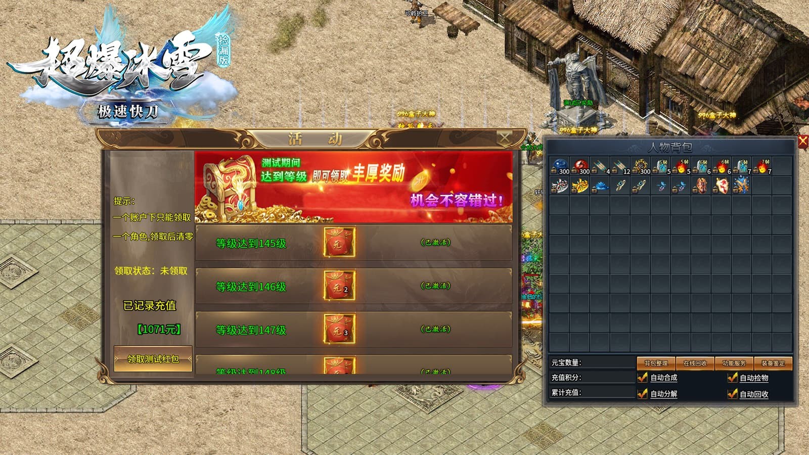 3、市面爆率最高√自动拾取√自动回收√自动合成。