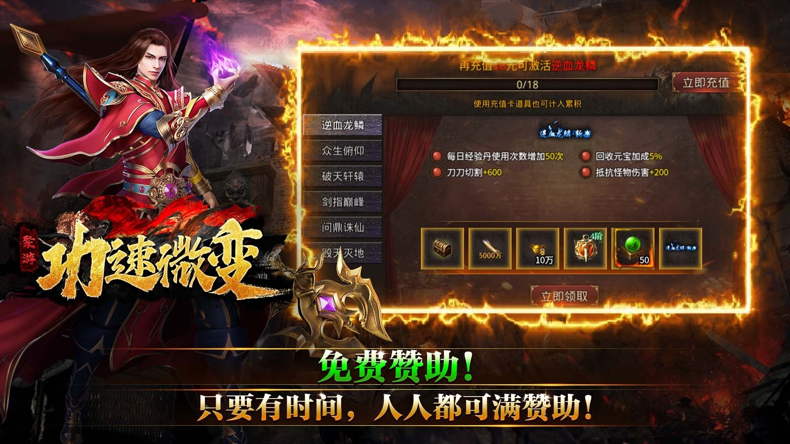 3、免费赞助,充值可嫖,无强制消费,散人也可逆袭霸服!