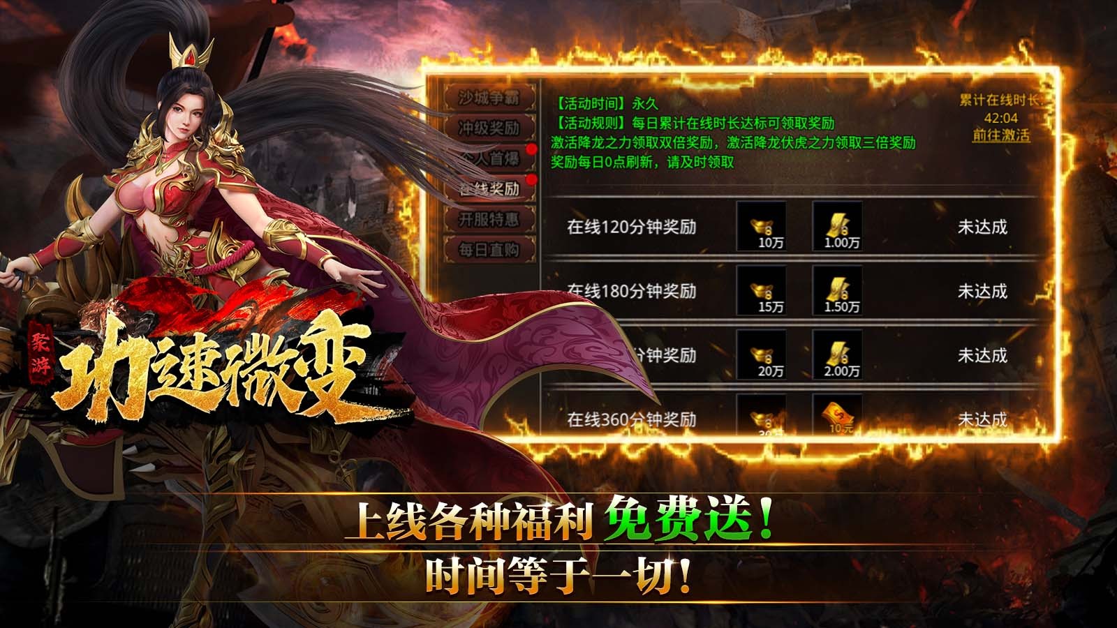 2、本服时间就是一切,超高爆率,打怪爆充值,上线送各种豪礼!