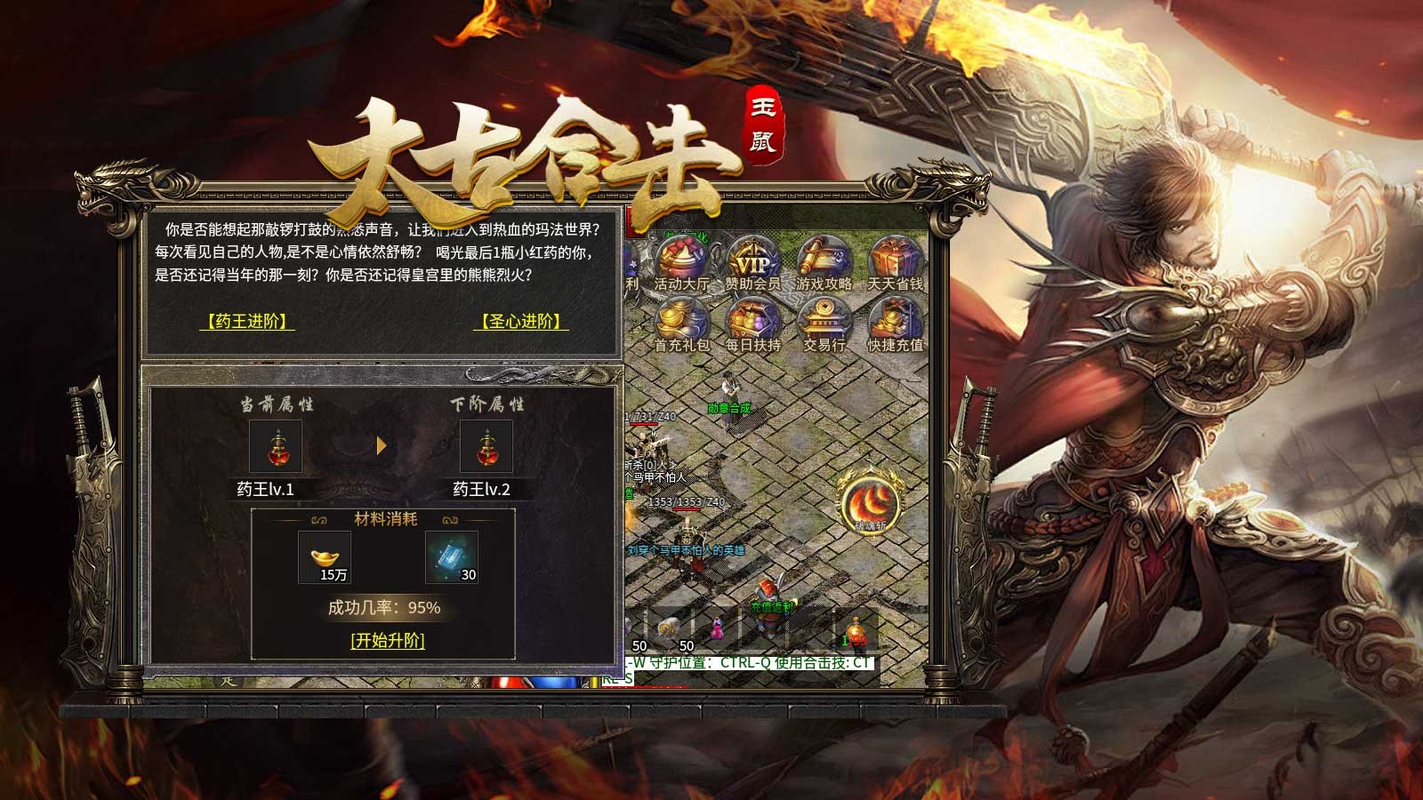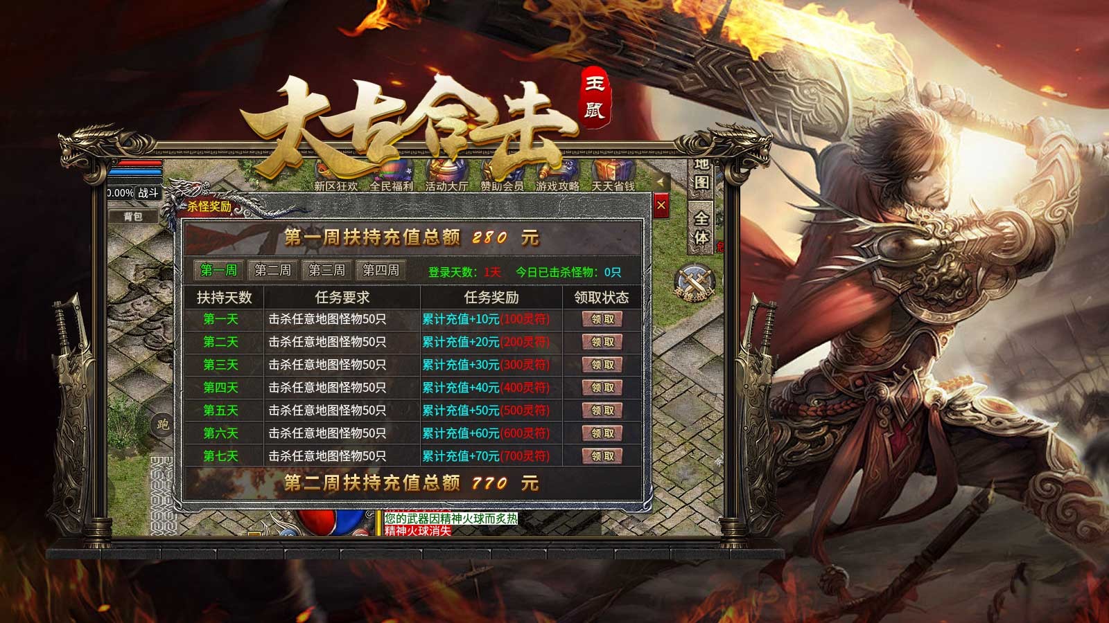 1、经典1.85三职业特色合击,一切都能打,上线疯狂送充值。