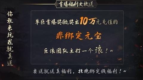 5、豪礼送送送,首爆奖励10W充值(非绑定)元宝。