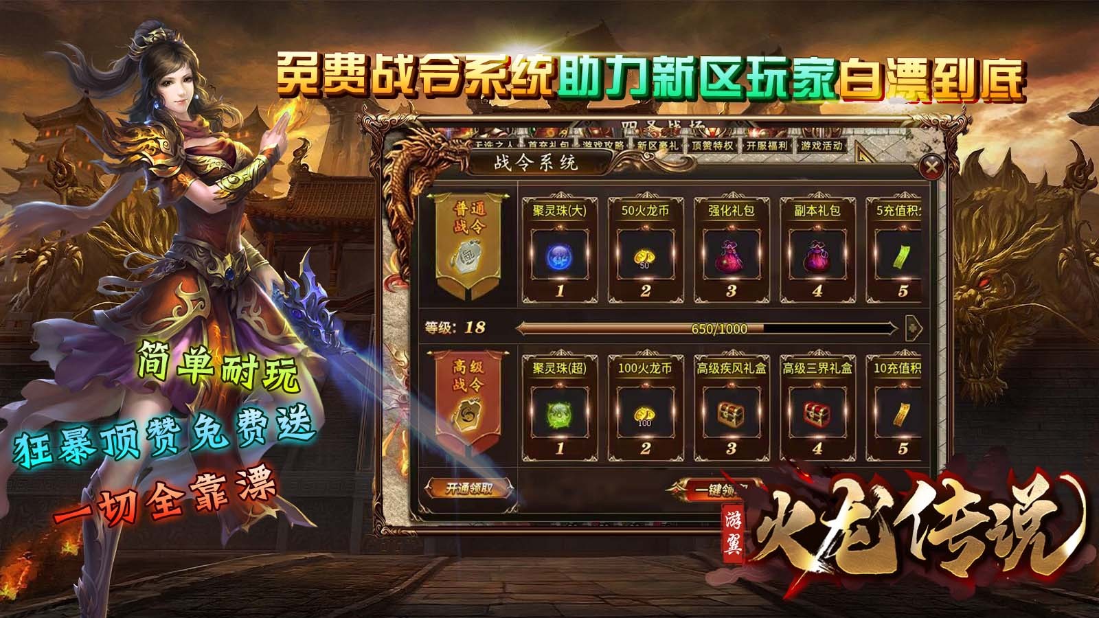 游翼火龙传说为玩家带来热血的火龙版本传奇游戏,整体的玩法简单容易上手,游戏内无任何的暗坑和套路,装备货币全靠打,野怪也能够掉落神装,花时间即可到达终极,更有超多创新的玩法等待着你的体验,享受不一样的传奇冒险。