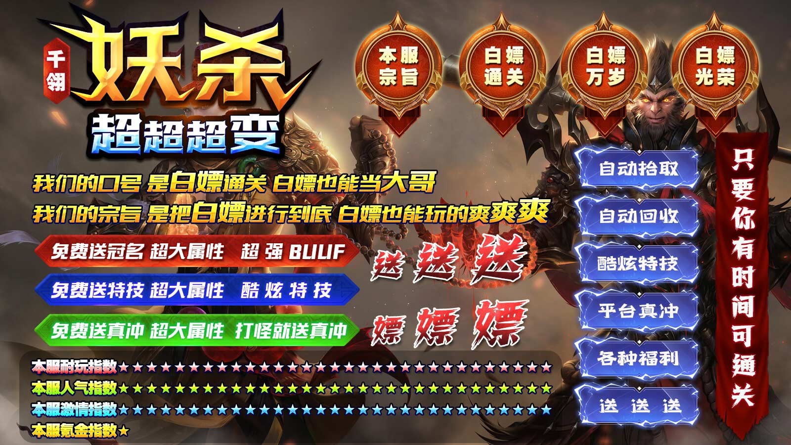 4、超变专属、炫酷时装、极品称号,打怪爆爆爆爆爆爆!!
