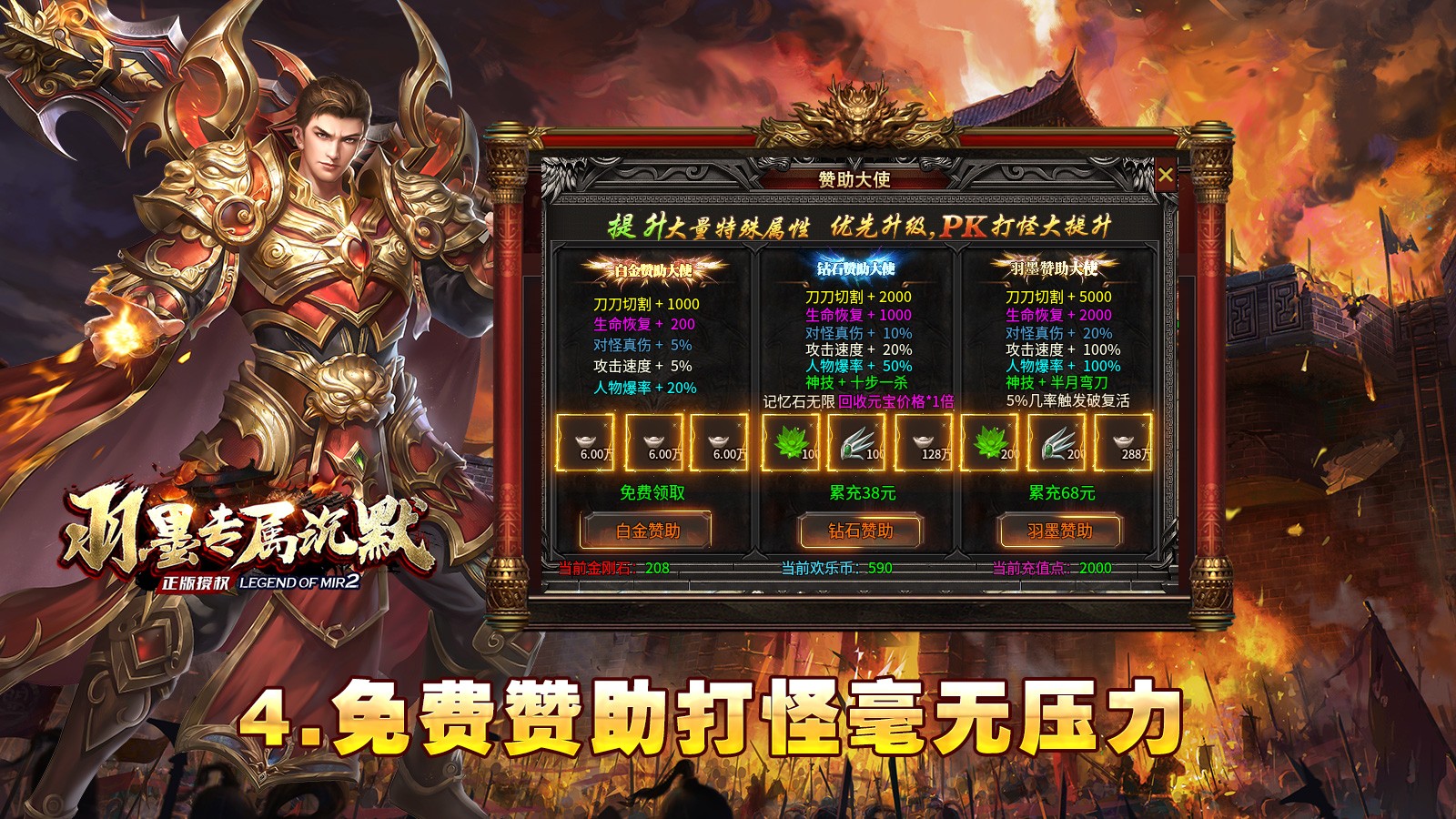 2、上线送自动拾取.自动回收.自动吃元宝经验.免费领取赞助。