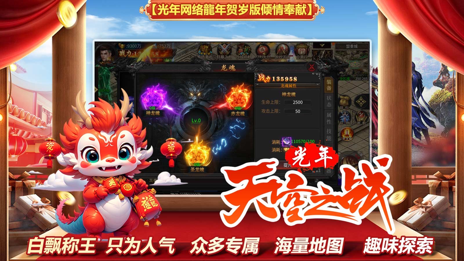 光年天空之战为玩家带来热血的传奇游戏,上线就送自动回收,自动捡物,半月技能直接给,拍卖行不设限,更有多种副本等待着你的挑战,随时都能够加入到精彩的战斗中,尽情地享受遍地光柱神装的爽快体验,感受沉浸式的冒险旅程。