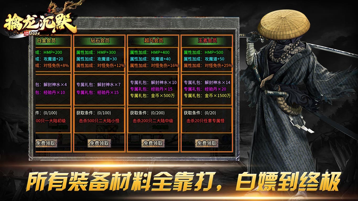 1、所有的材料非常保值,皆可由怪物爆出,本服不卖材料,金币元宝为主要流通货币,打怪就可以获得。